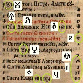 All font characters of the Croatian Cyrillic alphabet are based on graphic solutions which ones the ancient Bosnian writer Matija Divković used in his printed editions. Furthermore, many other works created by the Bosnian Franciscans have been printed using these graphic solutions in the past centuries. Thus, the shape of any letter is not fictional.