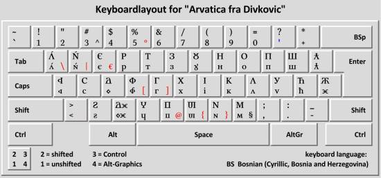 Keyboard layout for the Croatian Cyrillic alphabet